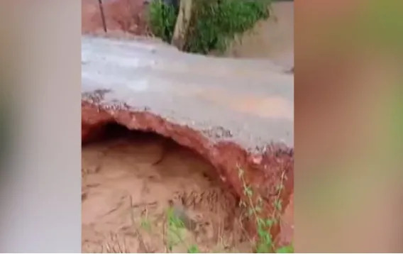O km 320 da BR-135 foi completamente interditado na sexta-feira (21) após o desvio utilizado pelos motoristas ceder por causa