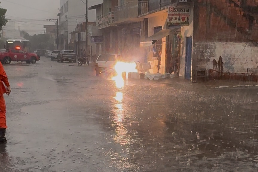 O incidente ocorreu na rua Santa Luzia, durante um temporal que atingiu a cidade.