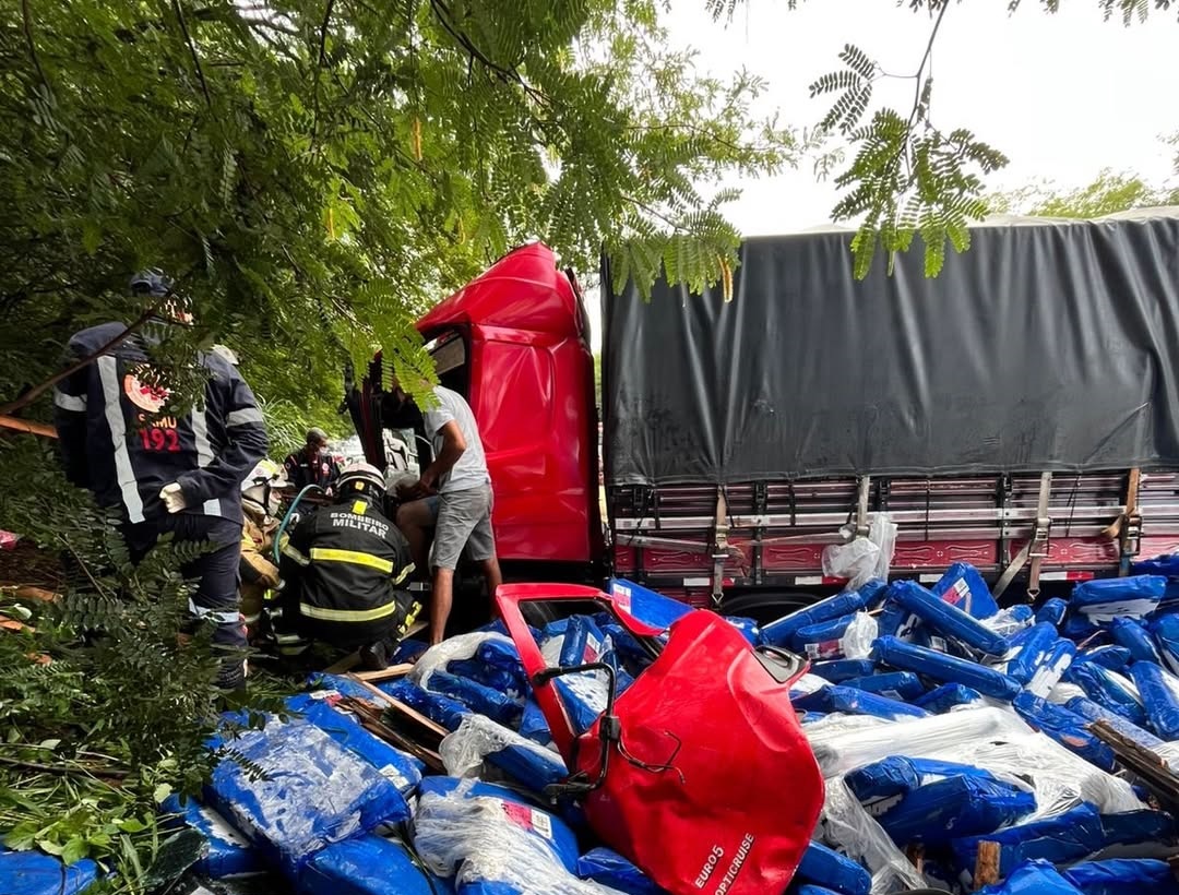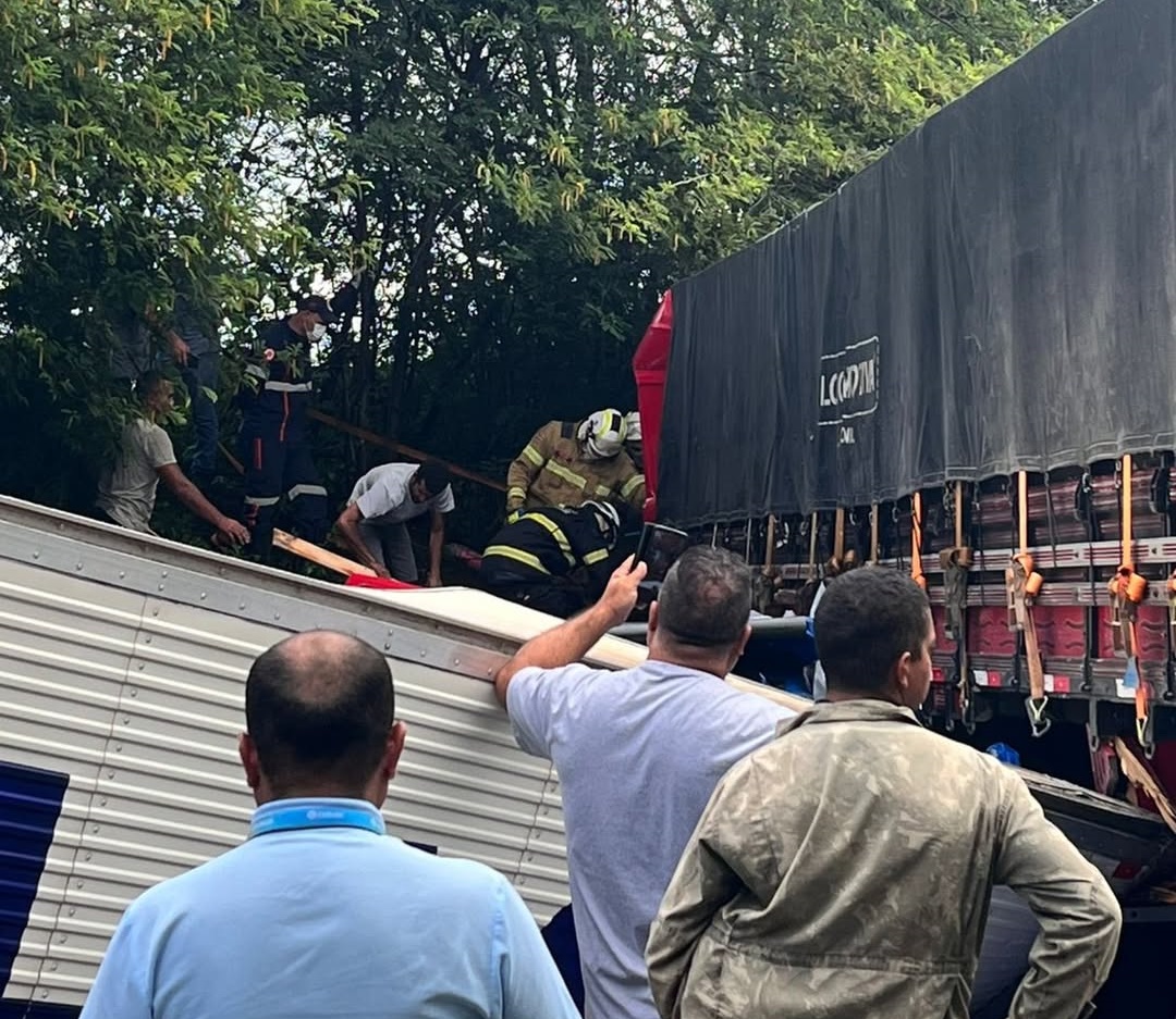 De acordo com as informações repassadas ao Centro Integrado de Comunicações (CICOM), o acidente envolveu dois caminhões, com duas vítimas presas às ferragens e com sinais vitais, sendo solicitado apoio imediato das guarnições.
