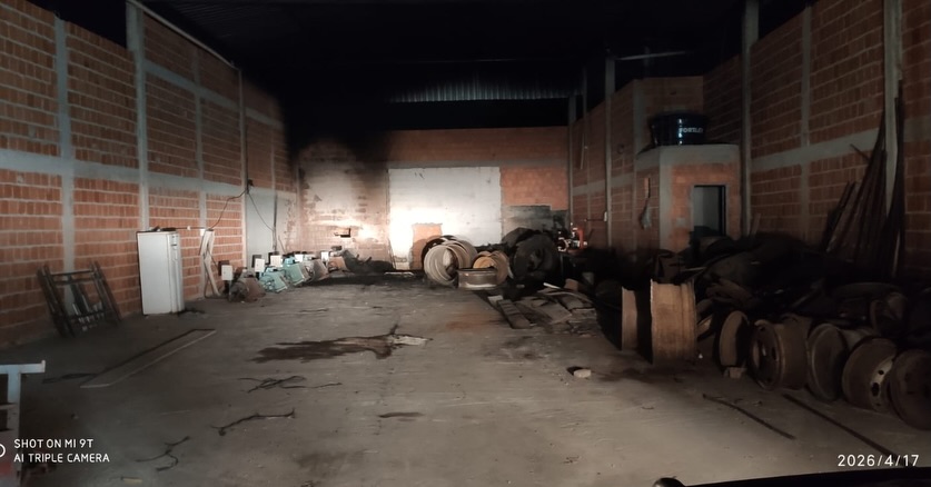 Parte da estrutura do galpão foi danificada e uma máquina vulcanizadora ficou completamente destruída pelas chamas.