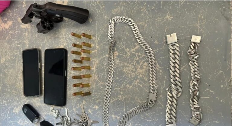 No local, após os procedimentos de abordagem foi encontrado pelos policiais militares um revólver calibre 38 com numeração suprimida, 16 cartuchos intactos e outros objetos pessoais.