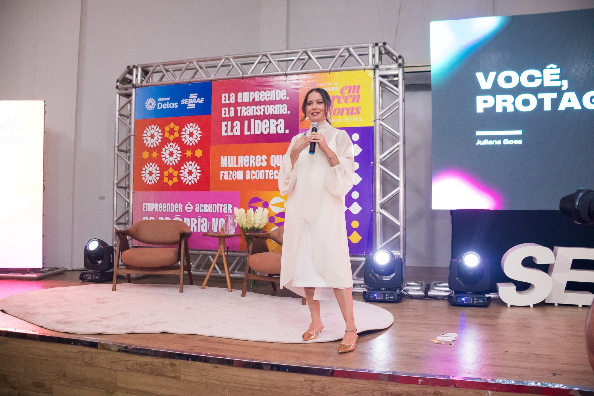 Já a palestrante Juliana Goes trouxe uma reflexão sobre protagonismo feminino com o tema “Você Protagonista – elevando seu potencial”. Em sua fala, reforçou a importância da autoconfiança e do reconhecimento da própria trajetória. Juliana disse que a mulher protagonista é aquela que se reergue, que entende que não precisa ser perfeita, mas que pode evoluir e se desenvolver, destacando que ao mudar a forma de se enxergar, conquista mais confiança para avançar nos negócios e na vida.